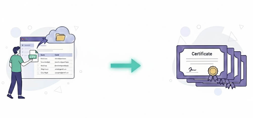 Generate hundreds of certificates instantly from a single import.