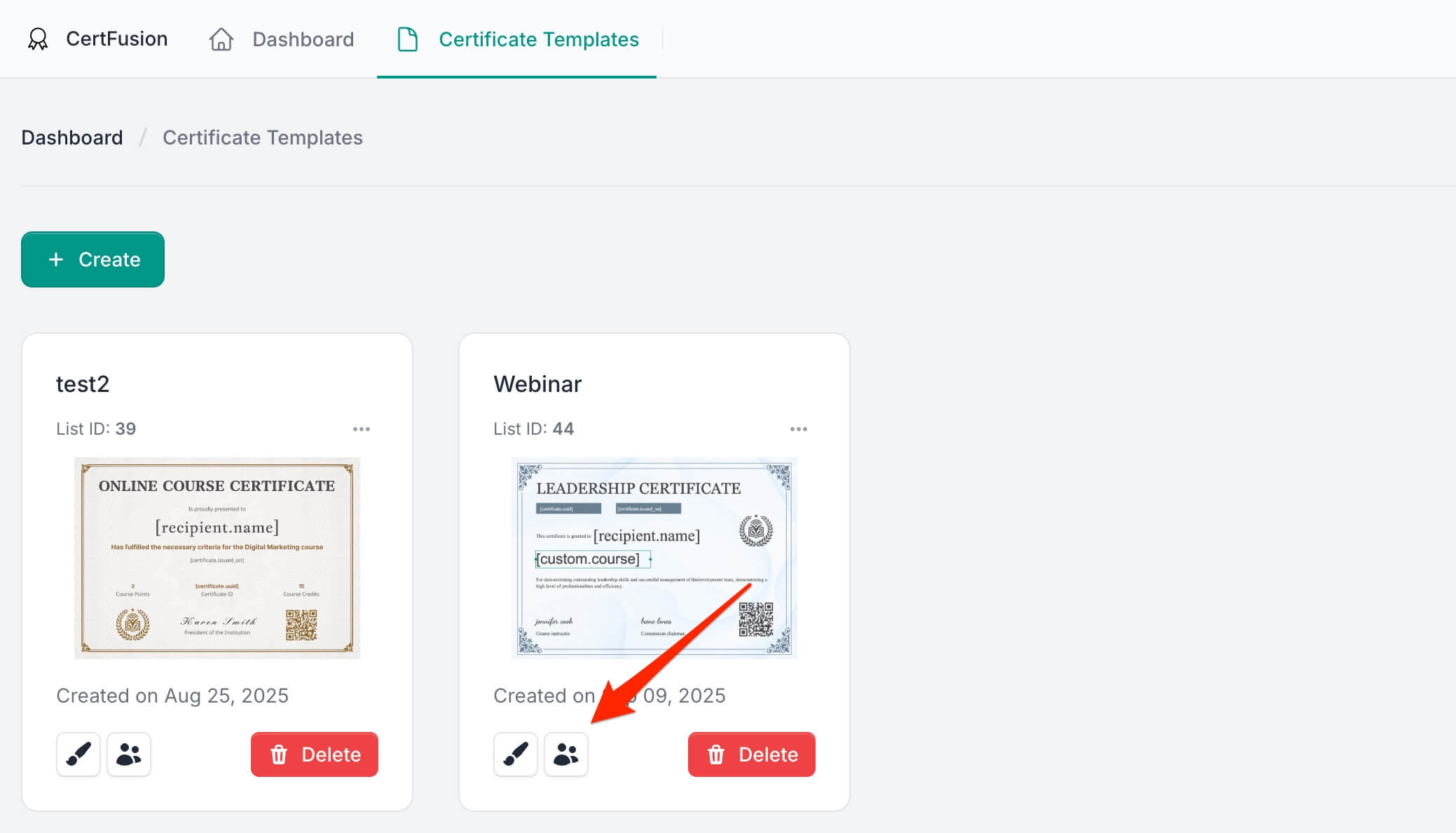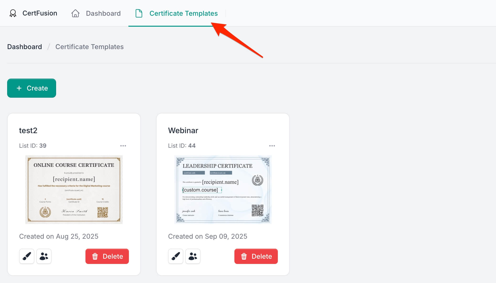 - Go to your Certificate Templates dashboard on CertFusion.