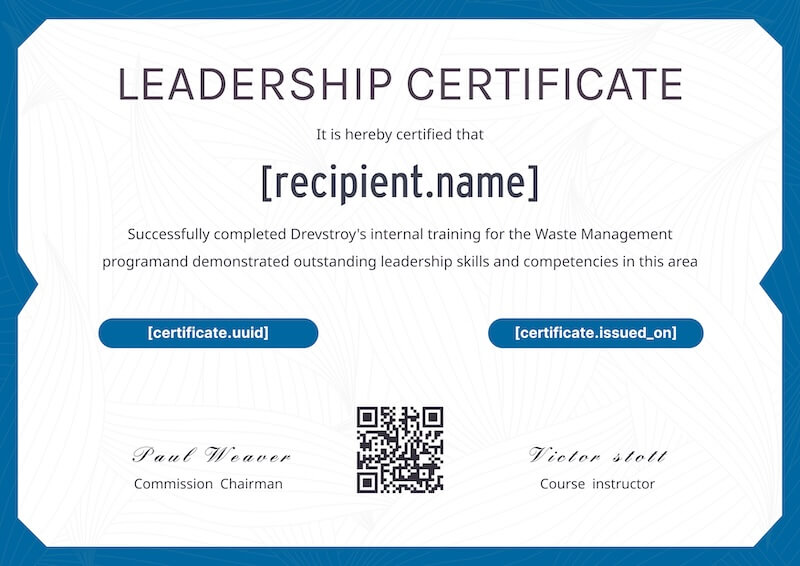 Our certificates feature a unique QR code that can be scanned for easy online verification.
