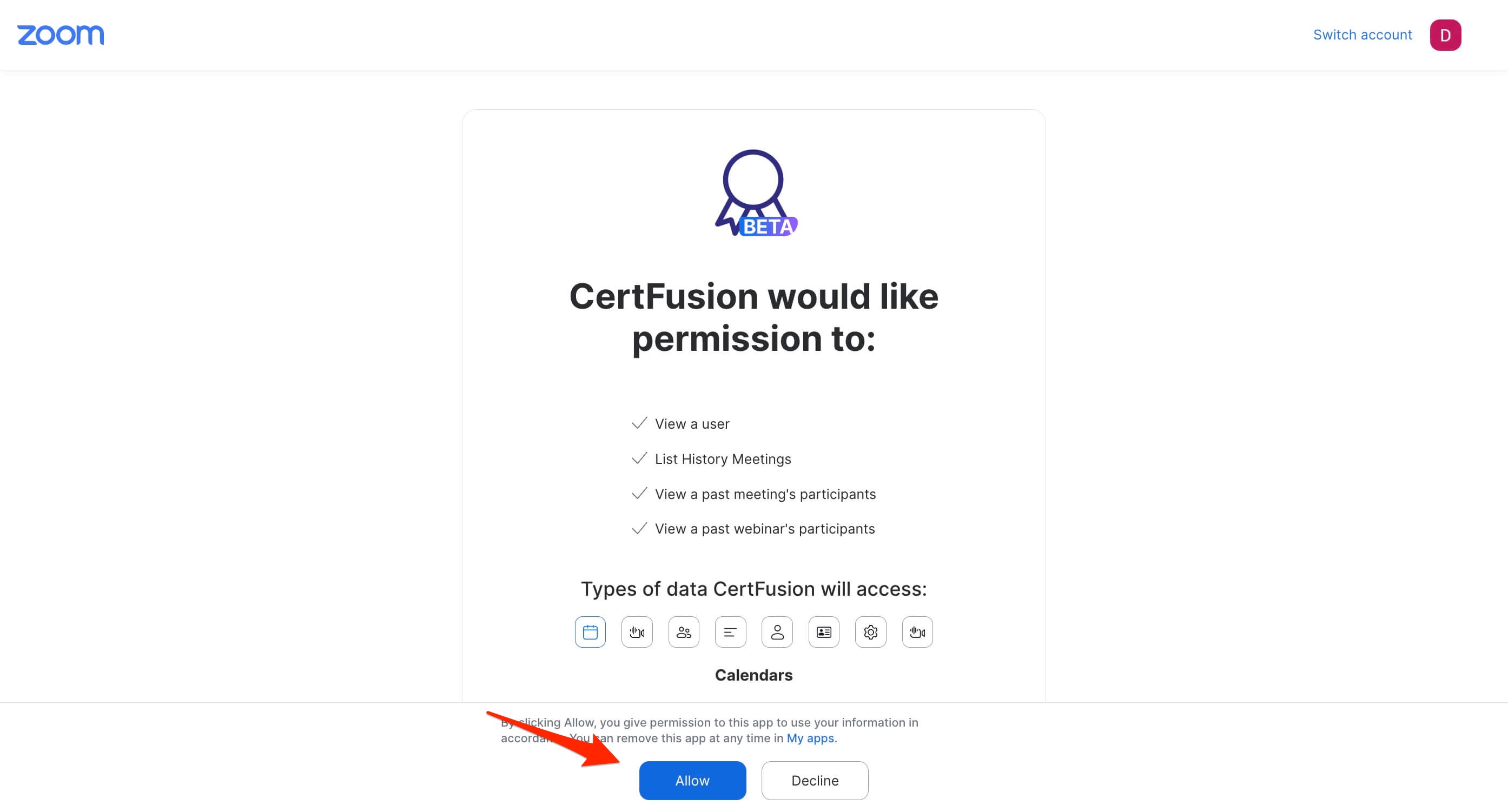 CertFusion only accesses participant data required for issuing certificates. We do not read your meeting content or recordings.
